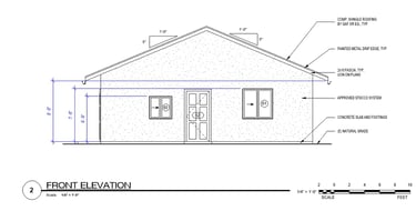 Charming 750 SF ADU featuring 2 bedrooms and 2 bathrooms with a highly efficient and functional layout. This design offers an open-concept kitchen and great room with vaulted ceilings, creating a bright and spacious living area. The unit includes a dedicated laundry space, well-sized bedrooms with closets, and two full bathrooms for added convenience. Finished with a clean stucco exterior and a simple gable roof design, this ADU provides a practical and attractive solution for comfortable living.